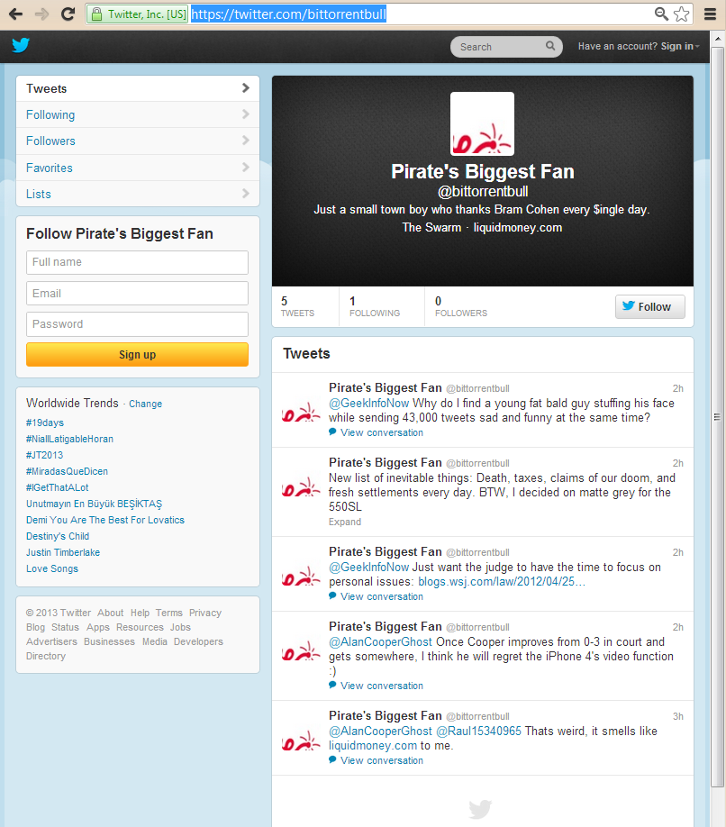 ¹ While “Prenda” was a rather neutral term (please don’t start the “Pretenda” joke), ironically the criminal enterprise has managed to embed the deceit as a modus operandi in its very name: one simply cannot be anti- its own turf. It’s like if a plumber would declare that he is anti-sewage. Or a lion would declare that he is anti-meat. John Steele does not even hide the fact that he loves the status quo regarding the online infringement: his (now temporarily defunct) Twitter account had a tagline “Just a small town boy who thanks Bram Cohen every $ingle day.”