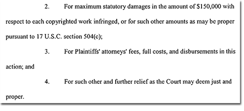 There are certain lawyers who technically do not break the law either, but leech on the society and creators alike. Such lawyers conspire with technology people and some rights holders (more than 90% of them — pornographers) to extract quick settlements from Internet subscribers who allegedly use Bittorent technology to share commercial digital products. The majority of alleged file-sharers are young and or/poor, so a couple of thousand dollars is a very sizable amount for them. The settlements are extracted using threats of expensive litigation and insane maximum statutory fines ($150,000 per work)¹. This amount is equal to the life savings of an average American family. These obscene numbers are articulated in the complaints, so it is all quite believable and super-scary: