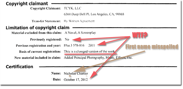 Also, I noticed some irregularities in the copyright registration that I can’t explain. Please chime in and discuss: