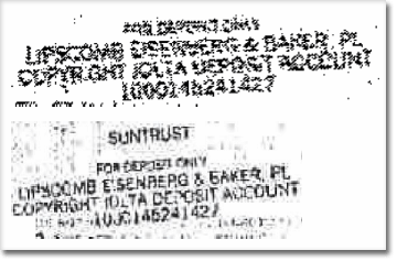 Who, except Lipscomb, knows how much settlement ransom money he received, how much he paid to plaintiff, and how much — to “expert witness” IPP International? The answer is simple: his bank. It appears that there is only one point of entry for settlement money, and it is Lipscomb’s law firm’s deposit account as shown on the settlement check endorsements: