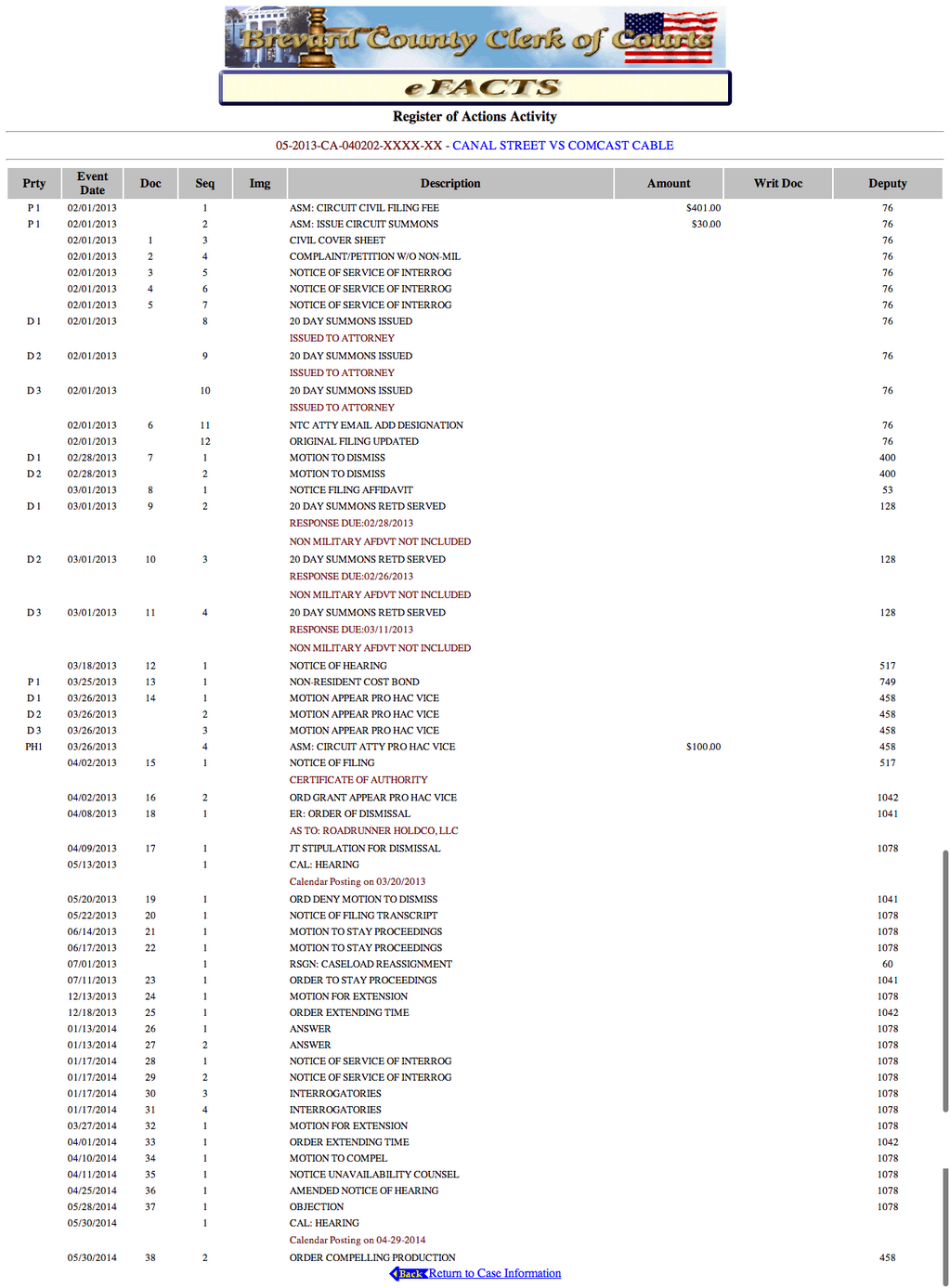 Today the Pure Bill of Discovery case in Brevard County filed by Canal Street Films was dismissed. No John Doe info will be released!