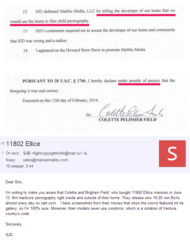 Implying that being a male somehow proves the guilt is bad enough, but there is more. Doesn’t Colette Field, X-Art/Malibu Media co-owner, state in her endless declarations that