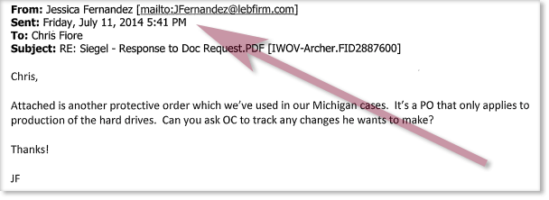 If you look into the Exibit A (email correspondence between Malibu’s local Chis Fiore and Darth Newman), you will find yet another proof that Fiore is simply a pawn: he merely forwards documents to and from the Troll Center (Lipscomb’s associate Jessica Fernandez curated this litigation):