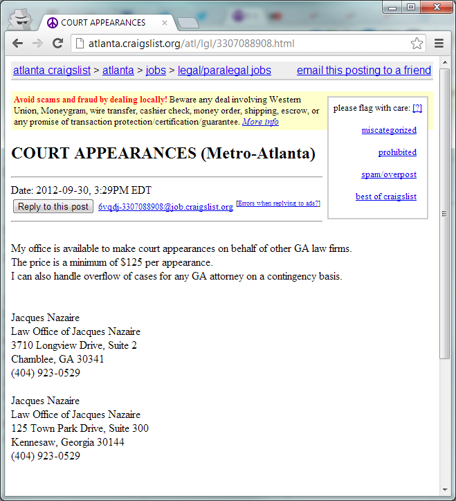No matter how this phrase is banal and overused, it will be repeated many more times, guaranteed. Because… Prenda is a gift that keeps on giving. At different times different clowns appeared in the farce; today it was Jacques Nazaire’s turn to take the stage. For those who don’t remember, Nazaire is a Georgia Craigslist lawyer who entertained us in the past by telling the court that Judge Wrights’ famous order is irrelevant in Georgia because California recognizes gay marriage, and because Anonymous attacked PayPal. He called the EFF “terrorists organization” and his “your momma” email to me prompted so many laughs…